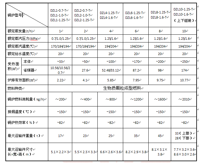DZL型臥式自動鏈條生物質(zhì)蒸汽鍋爐技術(shù)參數(shù)